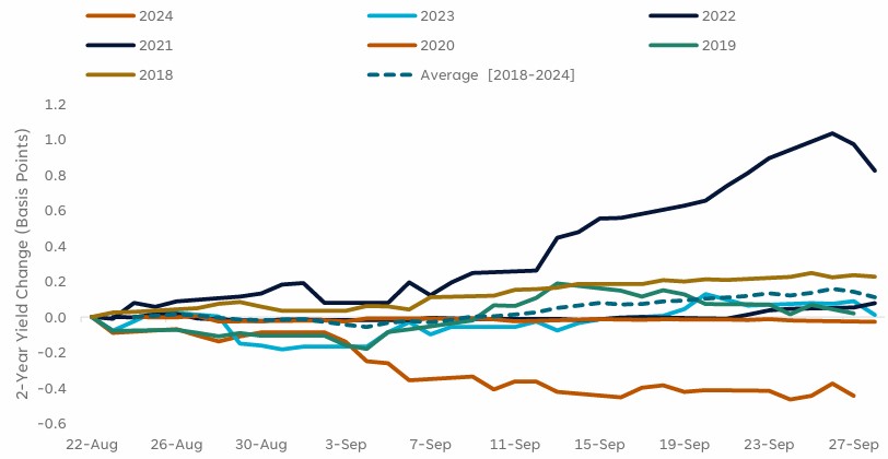 Two-Year Treasury Yields Tend to Drift Higher After the Jackson Hole Symposium