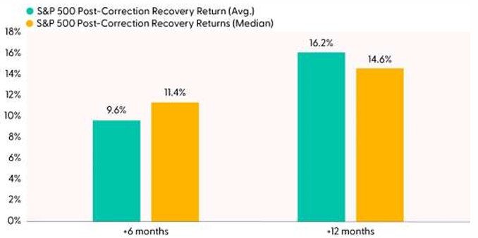 Corrections (10–20% declines) that were fully recovered may be a better way to assess current market conditions, given a new high for the S&P 500 was reached on June 27, 2025. Once a correction loss has been fully recovered, double-digit gains over the next six months are a reasonable expectation, though past performance does not guarantee future results and the economy is not emerging from a significant growth scare that typically precedes the strongest rallies.